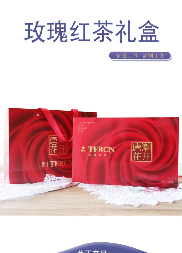 唐潮花開平陰重瓣紅玫瑰花冠紅茶獨(dú)立包裝禮盒裝