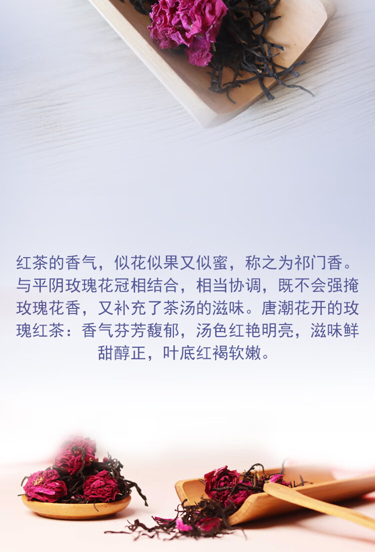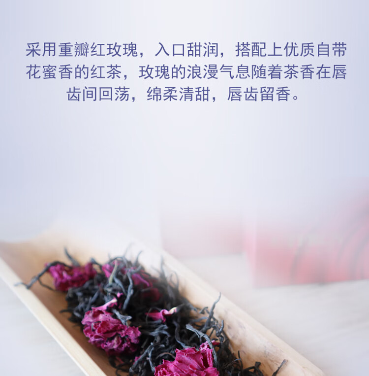 采用平陰重瓣紅玫瑰,入口甜潤(rùn),搭配上優(yōu)質(zhì)自帶花蜜香的紅茶,玫瑰的浪漫氣息隨著茶香在唇齒間回蕩,綿柔清...