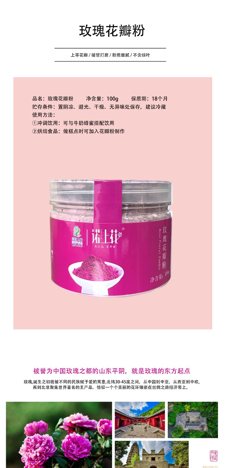 諾上花平陰重瓣紅玫瑰 玫瑰花粉 泡水 烘焙 食用花粉 單盒裝100克 100g